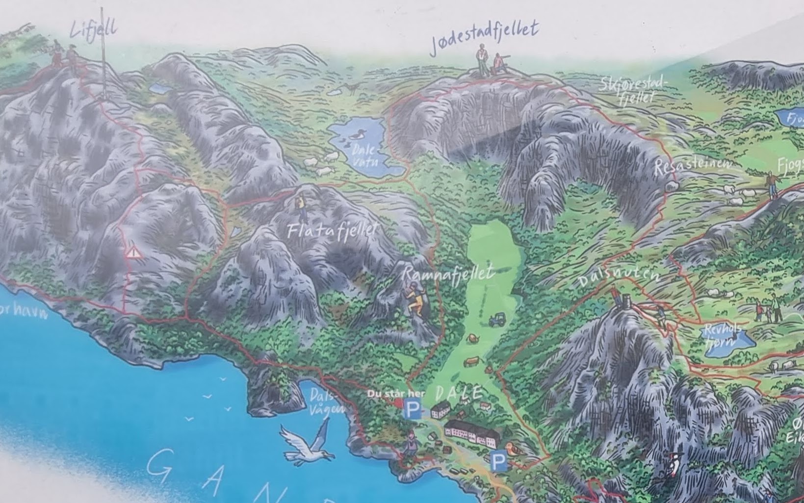 6 km runden er ca 440 hm og går fra Dale og utover fjorden til du kommer til Revsdalen, der er det oppover til du kommer til Lifjell, derretter over Sørafjell og ned til Dalevann og så mål på Dale.